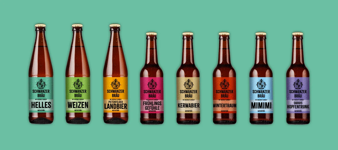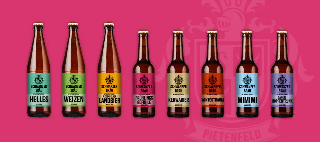 Großer Auftritt für die Kleinbrauerei: Dass Braumeister Thorsten Schwanzer viel Herzblut in den Traum vom eigenen Bier steckt, ist auf jeder Flasche zu lesen. Magenta4 sorgt dafür, dass die Spezialitäten der Schwanzer Bräu schon vor dem ersten Schluck herausstechen – mit einer selbstbewussten Gestaltung, starken Farben und markanter Typografie.